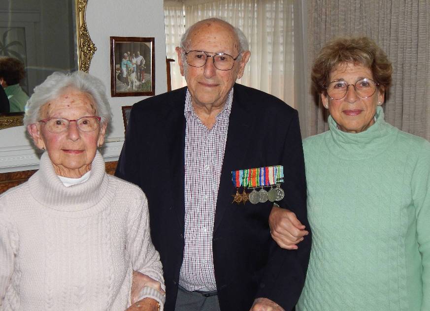 Taking tea with Leon Bloom, his wife of 72 years Margorie (née Loebascher) and daughter Judith at their lovely family home they built together as a young couple, was a warm family experience. The sideboard behind Leon is covered in framed family photos, and facing him at the other end of their sunny dining room table is the large TV for family Zoom meetings.