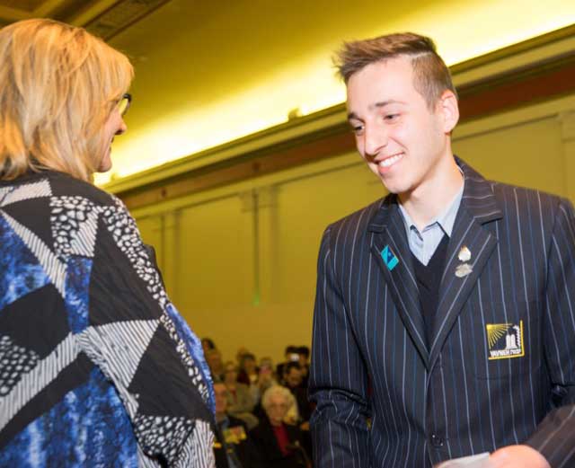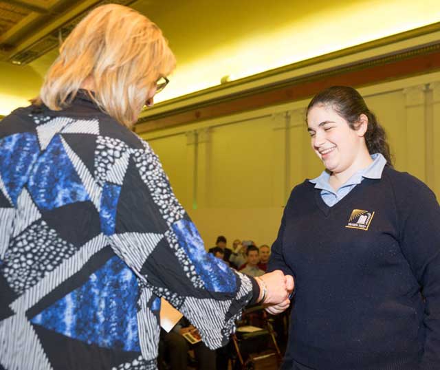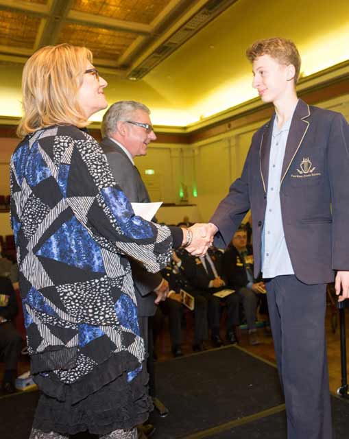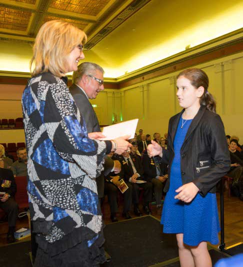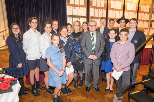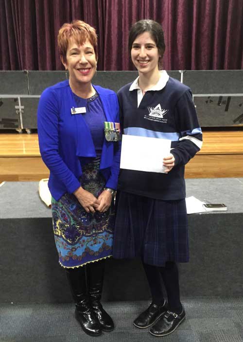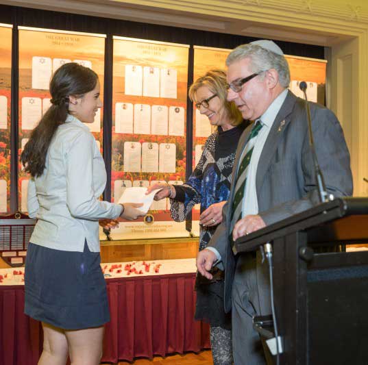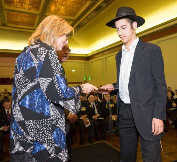 Mr Felix and Mrs Yvonne Sher presented the awards inagurated by VAJEX Australia in memory of their son, Private Gregory Sher obm, at the VAJEX Australia 2016 ANZAC Commemoration service held on 1 May 2016 at the Glen Eira Town Hall Auditorium.
