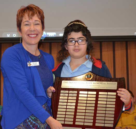 The presentations of the Private Gregory Sher Memorial awards were given by Captain Joshua Fink who represented the Sher Family who were interstate. Students eligible for the award are not already taking a high leadership profile in the school, but contribute by doing service in the community or at their school, in an outstanding way. Private Gregory Sher had the lowest rank in the army, but he made a significant difference with his service and sacrifice.