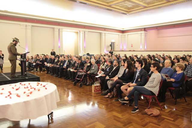 President Harry Lubansky and the ceremonial team Julie Leder and Judy Landau had a packed house at today's ANZAC Commemoration service.